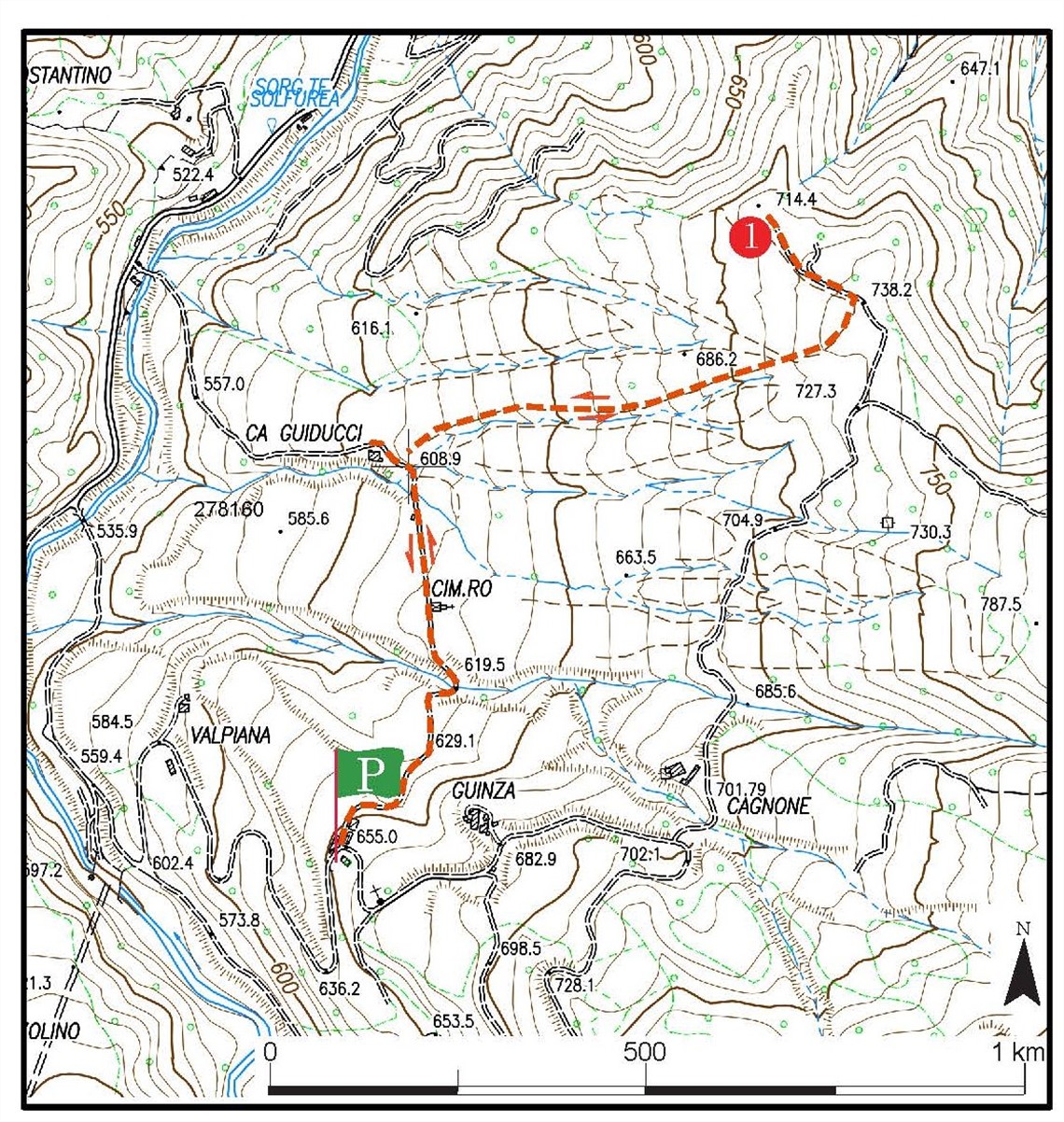 Le Piote si raggiungono da Mercatello sul Metauro prendendo la strada per la Guinza. Dopo circa 5 km si incontra un bivio e si prosegue sempre a sinistra seguendo le indicazioni per la Chiesa della Guinza. Qui si può parcheggiare (P) e proseguire a piedi verso l’itinerario proposto.